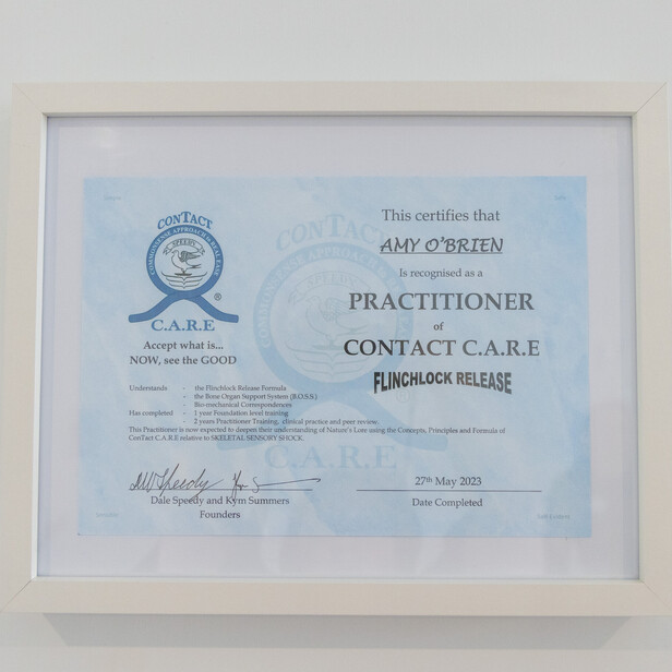 After training with Dale Speedy & Kym Summers (founders of ConTact C.A.R.E) I qualified as a ConTact C.A.R.E Practitioner. I will always be a student since the practice is continually evolving. This excites me because I love to learn!